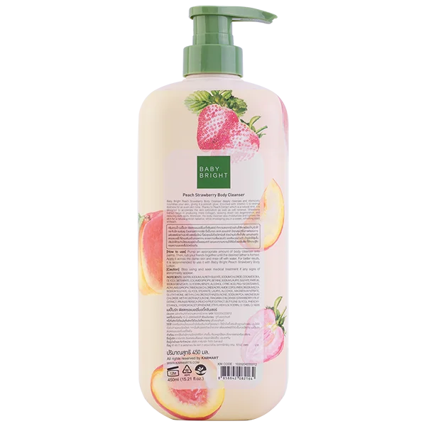 Indulge in a luxurious cleansing experience with Baby Bright Peach Strawberry Body Cleanser. This nourishing formula deeply cleanses and intensely nourishes your skin, leaving it with a radiant pinkish glow. Enriched with Vitamin C, Peach Extract, and Strawberry Extract, this body cleanser helps reverse dullness, promote even skin tone, accelerate skin exfoliation, and boost collagen production for a youthful appearance.