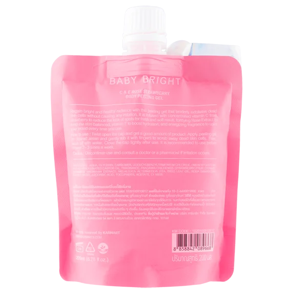 Restore your skin’s radiant, healthy glow with this body scrub gel that gently removes dead skin cells without irritation. It’s enriched with concentrated strawberry vitamin C to reduce the appearance of blemishes, fortifying rose extract to maintain skin balance, vitamin E to boost hydration, and a refreshing scent that boosts your mood every time you use it.